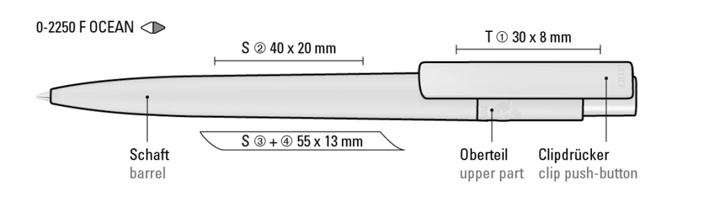 Druckkugelschreiber aus recyceltem PET-Material aus Ocean Bound Plastic mit matt gedecktem Gehäuse und Clip. Das durch Plastic Bank gesammelte Ocean Bound Plastic, auch bekannt als Social Plastic®, wird in Europa zu einem recycelten PET Schreibgerät für einen langlebigen und nachhaltigen Werbeeinsatz upgecycelt.