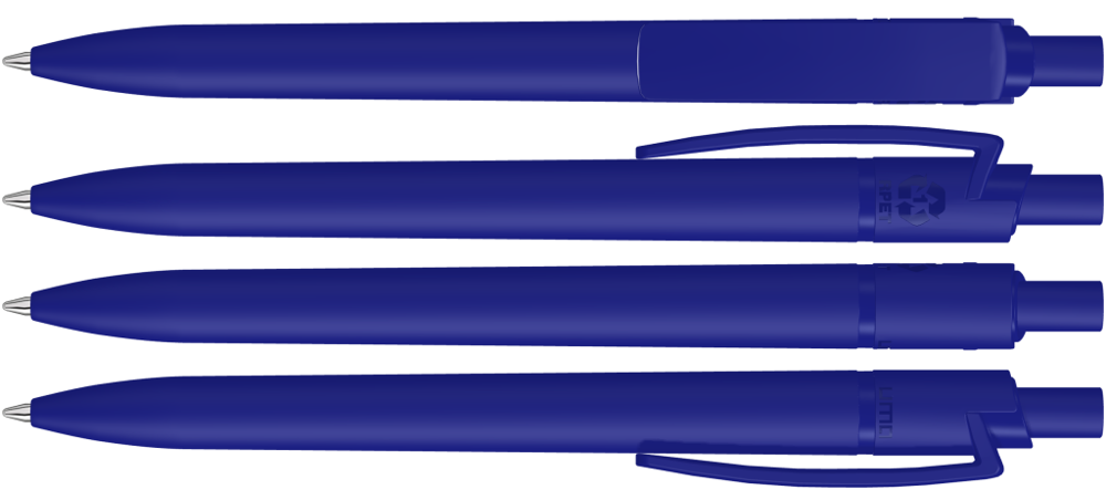 Druckkugelschreiber aus recyceltem PET-Material mit matt gedecktem Gehäuse, Clip und Drücker.