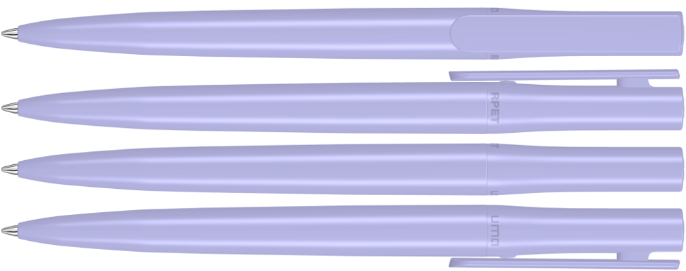Drehkugelschreiber aus recyceltem PET-Material mit gedeckt glänzendem Gehäuse.