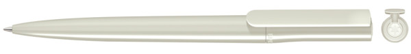 Drehkugelschreiber aus recyceltem PET-Material mit gedeckt glänzendem Gehäuse.