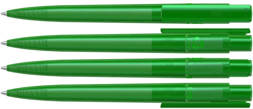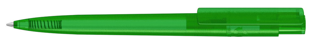 Druckkugelschreiber aus recyceltem PET-Material mit transparent gefrostetem Gehäuse und Clip.