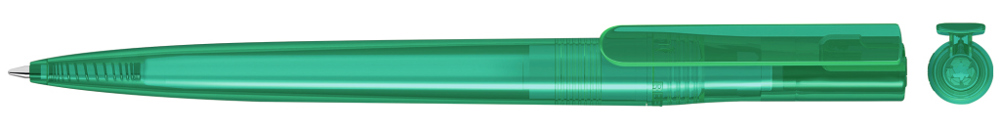 Drehkugelschreiber aus recyceltem PET-Material mit transparent glänzendem Gehäuse. mehr
