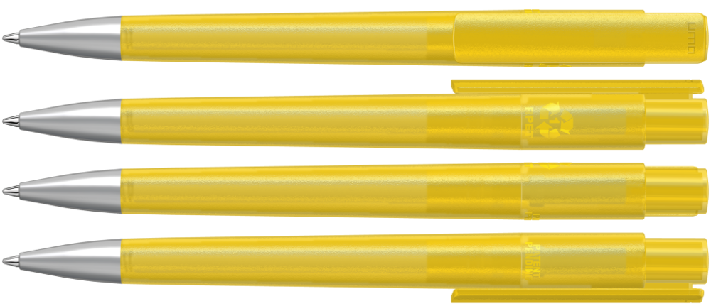 Druckkugelschreiber aus recyceltem PET-Material mit transparent gefrostetem Gehäuse und Clip... mehr