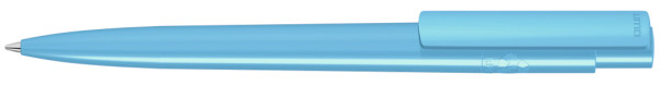 Druckkugelschreiber aus recyceltem PET-Material mit gedeckt glänzendem Gehäuse und Clip.
