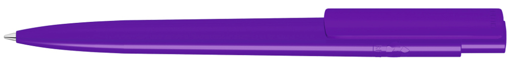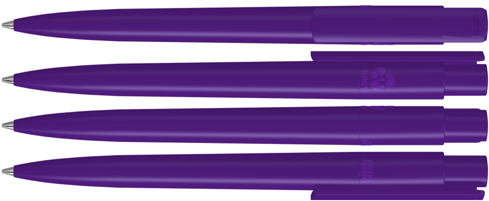 Druckkugelschreiber aus recyceltem PET-Material mit gedeckt glänzendem Gehäuse und Clip.