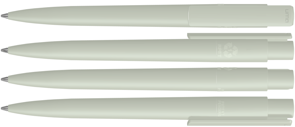 Druckkugelschreiber aus recyceltem PET-Material mit matt gedecktem Gehäuse und Clip.