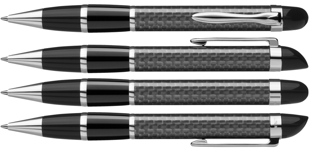 Edler Carbonfaser Metalldrehkugelschreiber mit farbiger Griffzone, flexiblem Metallclip,... mehr