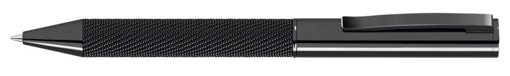 Metall-Drehkugelschreiber glänzend lackiert mit Softdrehmechanik und gefedertem Metallclip. Schaft mit integriertem Meshband.