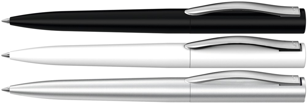 Metall-Drehkugelschreiber mit matt lackiertem Gehäuse, Softdrehmechanik und gefedertem, gebürstetem Clip.