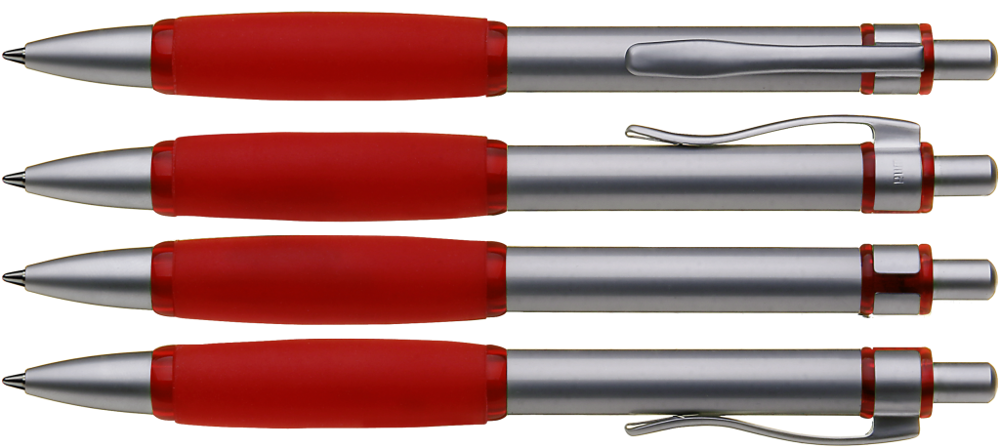 Metall-Druckkugelschreiber mit Schaft, Drücker, Clip und Spitze glanzverchromt. Große, farbige Gummigriffzone.