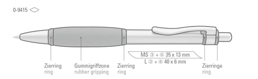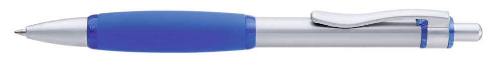Metall-Druckkugelschreiber mit Schaft, Drücker, Clip und Spitze glanzverchromt. Große, farbige Gummigriffzone.