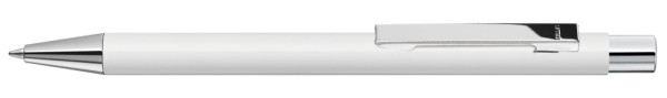 Metall-Druckkugelschreiber mit mattem Gehäuse. Metallclip, Metallspitze und Drücker silber glänzend. mehr