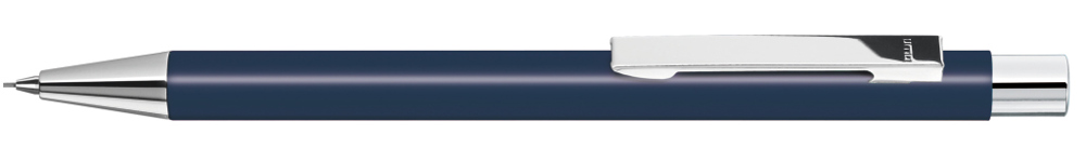 Metall-Druckbleistift (0,7mm) mit mattem Gehäuse. Metallclip, Metallspitze und Drücker silber... mehr