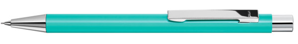 Metall-Druckbleistift (0,7mm) mit mattem Gehäuse. Metallclip, Metallspitze und Drücker silber... mehr