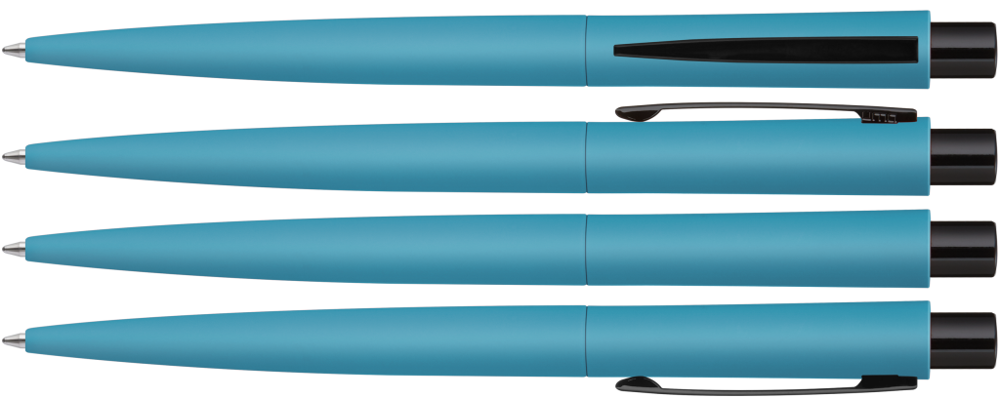 Metall-Druckkugelschreiber mit Softtouch-Gehäuse. Metallclip und Drücker schwarz glänzend. mehr