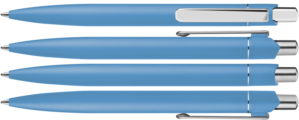 Metall-Druckkugelschreiber mit matt lackiertem Aluminiumschaft. Metallclip und Drücker silber glanzverchromt.