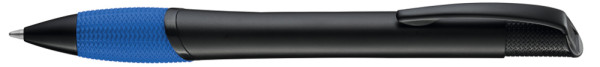 Metall-Druckkugelschreiber mit schwarz matt lackiertem Gehäuse, farbige Gummigriffzone und matt schwarzen Beschlagteilen.