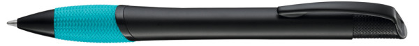 Metall-Druckkugelschreiber mit schwarz matt lackiertem Gehäuse, farbige Gummigriffzone und matt schwarzen Beschlagteilen.