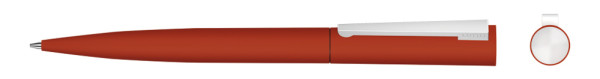 Metall-Drehkugelschreiber mit Softtouch-Gehäuse, gefederter Metallclip und Stopfen matt verchromt.
