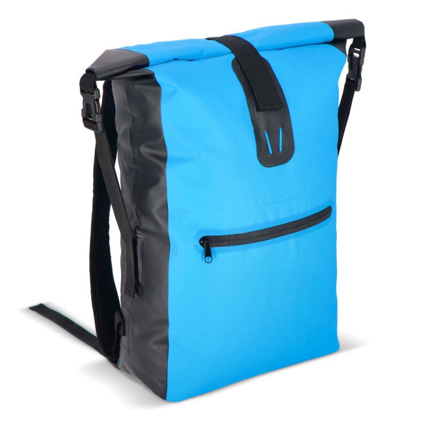 Verstellbarer, wetterfester Rucksack aus robustem Material. Das Rolltop kann auf zwei Arten geschlossen werden, was zusätzliche Flexibilität bietet. Die verschweißten Nähte halten den Inhalt trocken und die Schultergurte sind für den Komfort gepolstert.