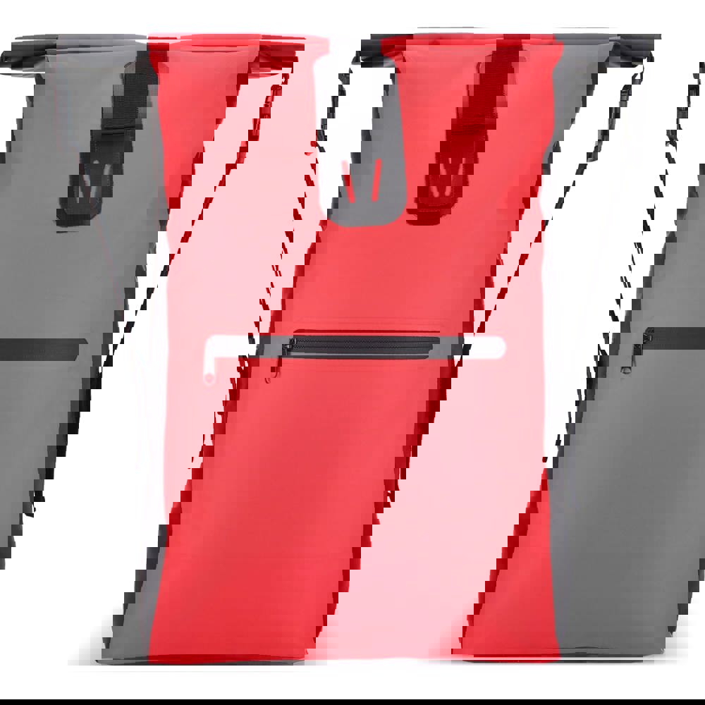 Verstellbarer, wetterfester Rucksack aus robustem Material. Das Rolltop kann auf zwei Arten geschlossen werden, was zusätzliche Flexibilität bietet. Die verschweißten Nähte halten den Inhalt trocken und die Schultergurte sind für den Komfort gepolstert.