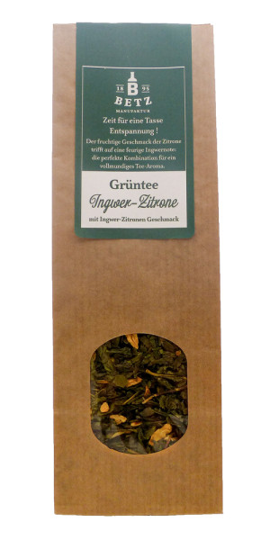 Diese Tee-Komposition vereint das Beste aus zwei Welten: Die spritzige Leichtigkeit sonnengereifter Zitronen und die wärmende Schärfe von Ingwer verschmelzen auf der Basis von feinem grünem Tee zu einem erfrischend-vollmundigen Geschmackserlebnis. Ergänzt durch Zitronenschalen, Fruchtgranulat und einen Hauch Aprikose, wirkt der Tee ausgewogen, belebend und angenehm natürlich.