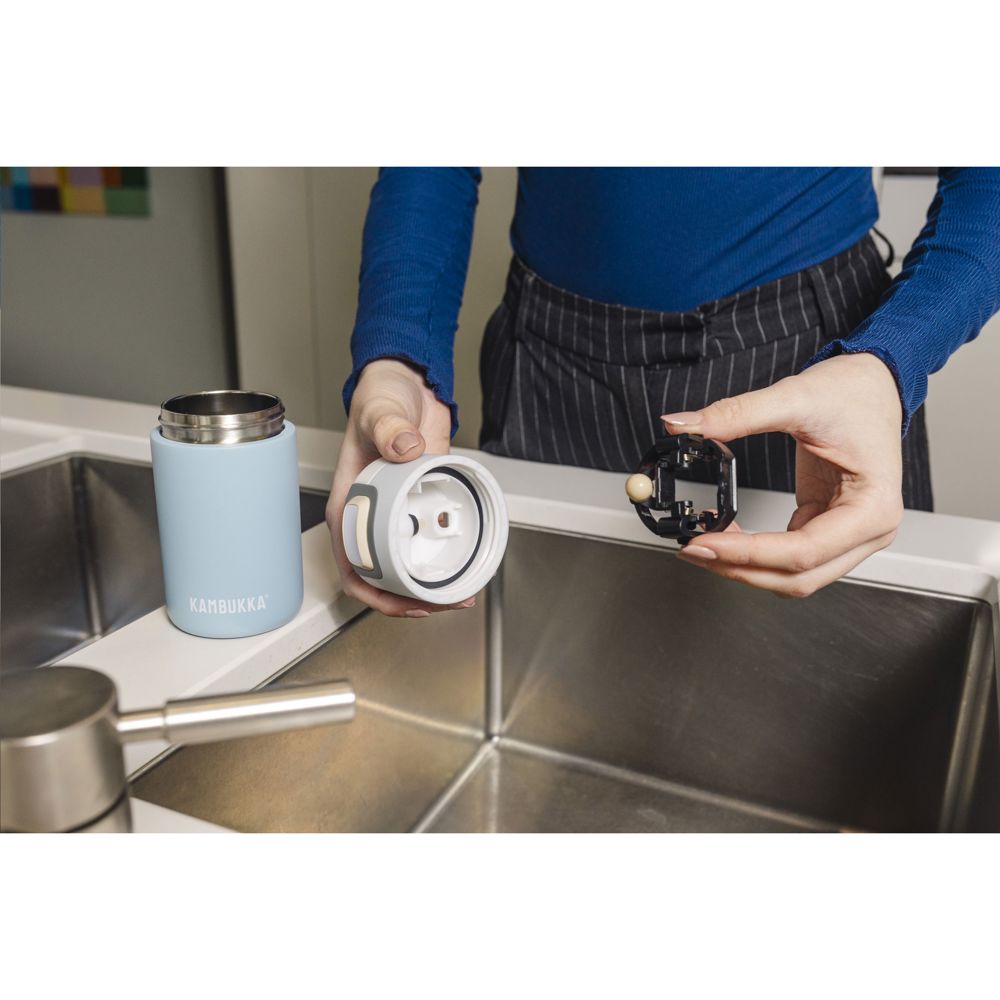 Der ideale Thermobecher der Marke Kambukka® für unterwegs • hervorragende Qualität • attraktives Design • praktisch und klein • vakuumisolierter 18/8-Edelstahl • hält Getränke bis zu 5 Stunden warm und bis zu 11 Stunden kalt • 3-in-1-Deckel mit 2 Trinkpositionen: kurz drücken und schnell einen Schluck trinken oder ganz öffnen, um so bequem und ohne Verschütten zu trinken • dank Snapclean® leicht zu reinigen: entfernen Sie den inneren Mechanismus in einer Bewegung. • Universalverschluss: passt auch auf andere Kambukka® Trinkflaschen • der Verschluss ist spülmaschinengeeignet - den Becher mit der Hand spülen • rutschfester Boden • 100% auslaufsicher • Fassungsvermögen 300 ml. LAGERBESTANDSINFORMATION: Bis zu 1.000 Stück innerhalb von 6 Tagen verfügbar. Ausnahmen vorbehalten.