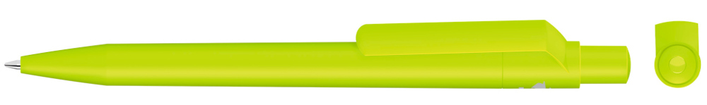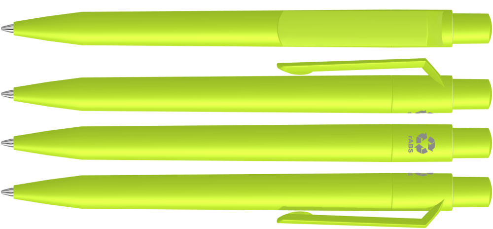 Druckkugelschreiber mit gedeckt mattem Gehäuse, Clip, Drücker und Stopfen aus recyceltem ABS-Kunststoff.