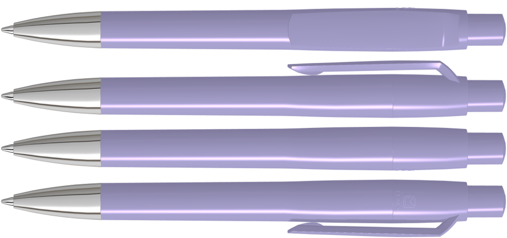 Druckkugelschreiber mit gedeckt glänzendem Gehäuse, Clip, Drücker und Stopfen. Spitze glanzverchromt.