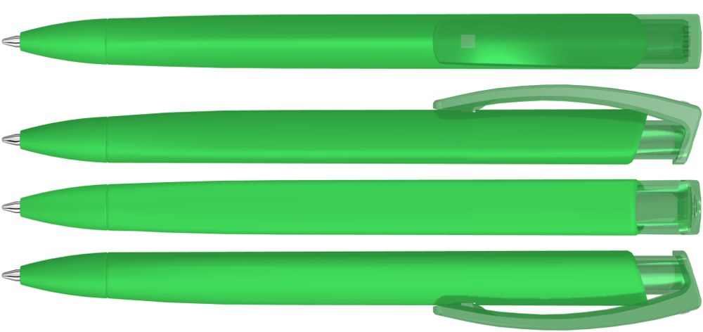 Druckkugelschreiber mit gedeckt mattem Dreikantgehäuse und transparent glänzendem Clip aus... mehr