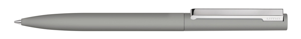 Metall-Drehkugelschreiber mit Softtouch-Gehäuse und gefedertem Metallclip silber glänzend.