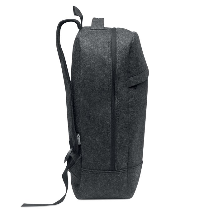 13'''' Laptop Rucksack aus RPET-Filz. Großes Hauptfach und Reißverschlussfach. Gepolsterte Rückseite und gepolsterte Schultergurte. Trolley-Halterung.