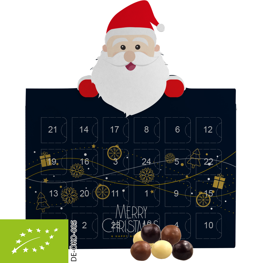 Bio Knusperkugeln-Mix, ca. 50g, Adventskalender Mini Weihnachtsmann