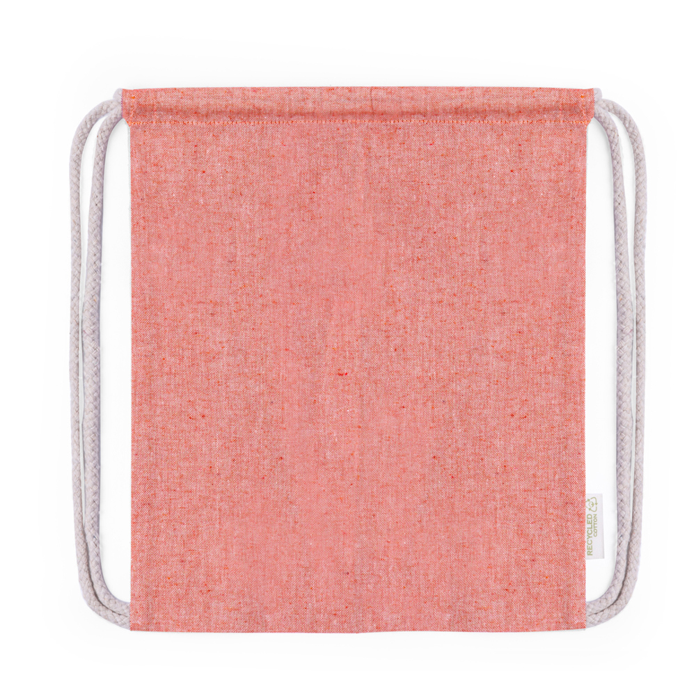 Rucksack mit Kordelzug aus recycelter Baumwolle 120 g/m2. Selbst schließende Schnüre aus Baumwolle, mit Öko-Label auf einer Seite und in einer breiten Palette von Naturfarben erhältlich. Belastbar bis zu 4kg Gewicht.
