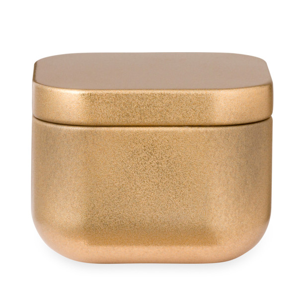 Duftkerze im Metallgefäß und in eleganten Farben, mit Vanilleduft. Präsentiert in einer individuellen Kraft-Designbox.