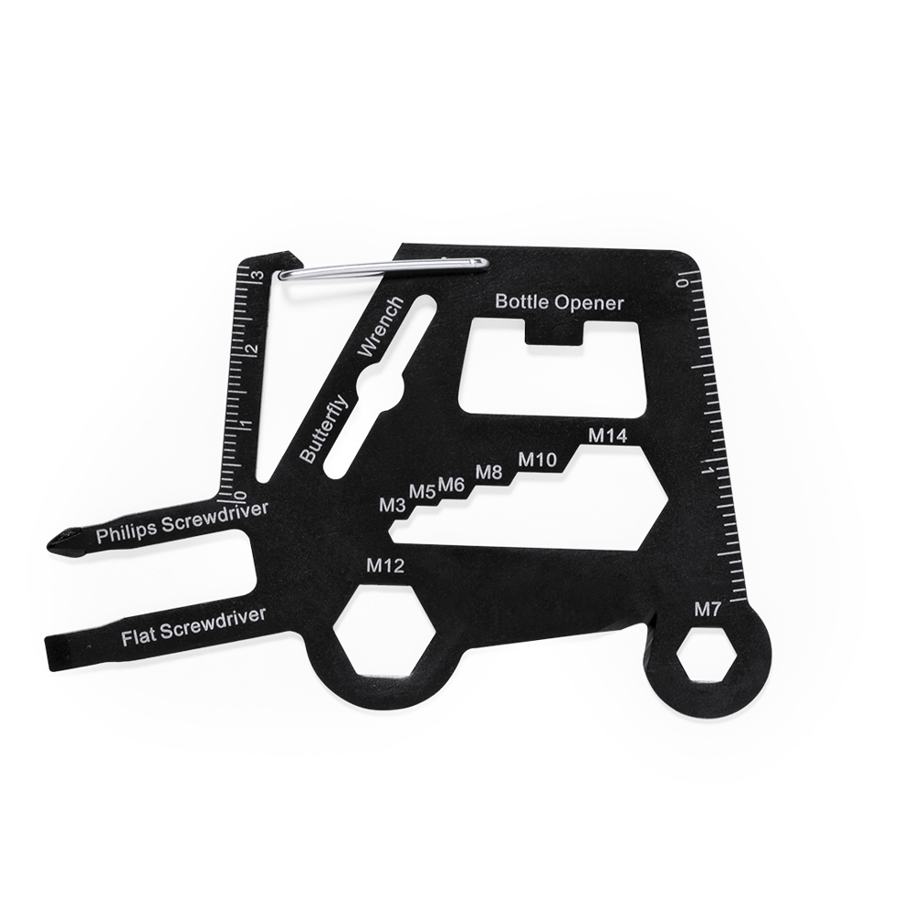 Praktisches und ausgefallenes Multitool aus Edelstahl in Form eines mechanischen Bullen. Mit 16 Funktionen, unter anderem: Schlitz- und Kreuzschlitzschraubendreher, Sechskantschlüssel in verschiedenen Größen, Lineal, Dosenöffner und Flaschenöffner. Darüber hinaus verfügt es über einen Karabiner für den einfachen Transport. Präsentiert in einer recycelten Papiertüte.