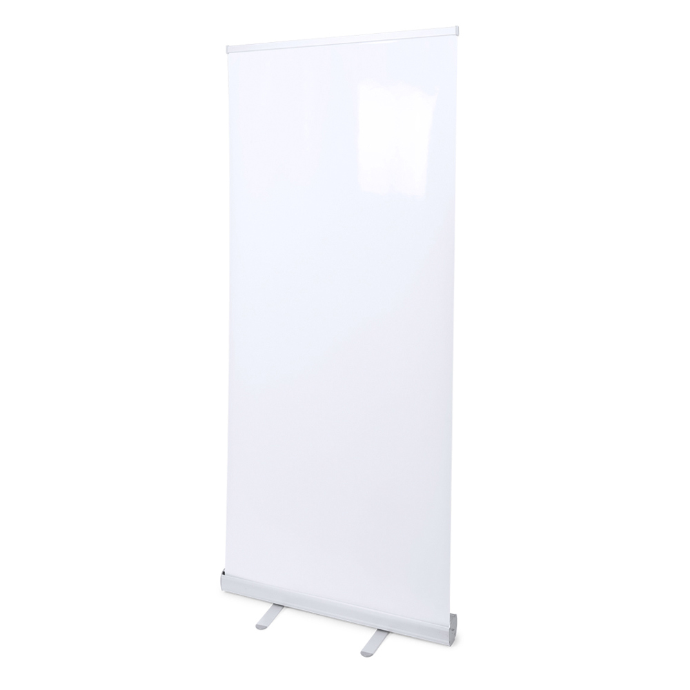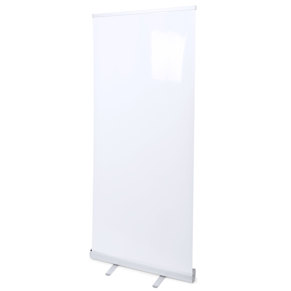 Roll-up-Ständer aus Aluminium. Inklusive Befestigungshaken und Aluminiumhalterungen. Geeignet für eine Plane mit den Maßen 85x200 cm (hochdichte Polypropylenplane, im Druckauftrag enthalten). Lieferung in einer Polyestertragetasche mit Griffen für einen bequemen Transport.