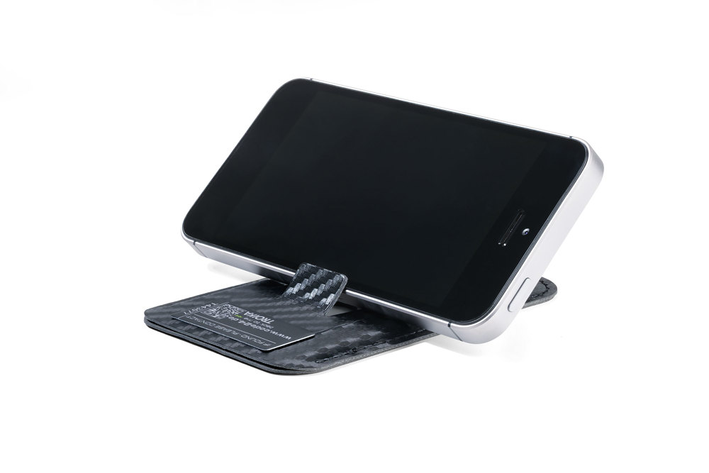 Kartenetui MagSafe mit Lost and Found Service, für 1-2 Karten zur magnetischen Befestigung am Smartphone, Aufstellfunktionen für horizontales und vertikales Aufrichten des Handys, zusätzlicher MagSafe Metallring mit 3M Klebefläche zur individuellen Befestigung, z.B. an allen gängigen Smartphones, Hüllen, Notizbüchern, etc., inklusive 2 Jahre kostenlosem Fundservice nach Registrierung, Kunstleder, Carbon Optik