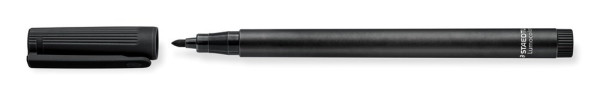 Universalstift für fast alle Oberflächen, für Overhead-Projektion geeignet, hervorragend wisch- und wasserfest auf fast allen Flächen, DRY SAFE - kann tagelang offen liegen ohne einzutrocknen, Strichstärke M (medium, ca. 1,0 mm), Schaft schwarz, Schoner und Abschlusskappe in Tintenfarbe, Gehäuse aus 97 % recyceltem Plastik, Made in Germany, auch erhältlich in aufstellbarer STAEDTLER Box