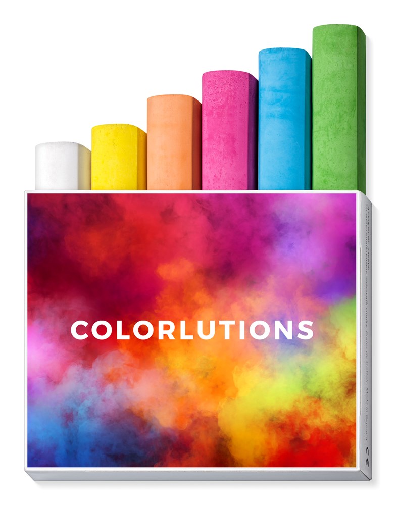 Kartonetui mit 6 Straßenmalkreiden, Kreidenfarben: weiß, gelb, orange, lila, blau und grün,... mehr