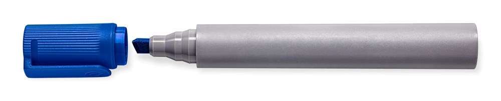 Flipchart-Marker, ideal für Papier, da Tinte nicht durchschlägt, sekundenschnell trocken, daher ideal für Linkshänder, DRY SAFE - kann tagelang offen liegen ohne einzutrocknen, Keilspitze, Strichbreite ca. 2-5 mm, Schaft grau, Schoner und Abschlusskappe in Tintenfarbe, Gehäuse aus 97 % recyceltem Plastik, Made in Germany