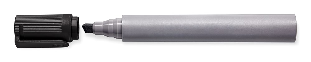 Flipchart-Marker, ideal für Papier, da Tinte nicht durchschlägt, sekundenschnell trocken, daher ideal für Linkshänder, DRY SAFE - kann tagelang offen liegen ohne einzutrocknen, Keilspitze, Strichbreite ca. 2-5 mm, Schaft grau, Schoner und Abschlusskappe in Tintenfarbe, Gehäuse aus 97 % recyceltem Plastik, Made in Germany