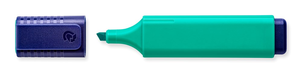 Textmarker mit großem Tintenspeicher für extra lange Markierleistung, Tinte auf Wasserbasis, INKJET SAFE - verwischt keine Inkjet-Ausdrucke, sekundenschnell trocken, Drehkappe für leichtes Öffnen, Schaft in Tintenfarbe, Schoner und Abschlusskappe dunkelblau, Made in Germany