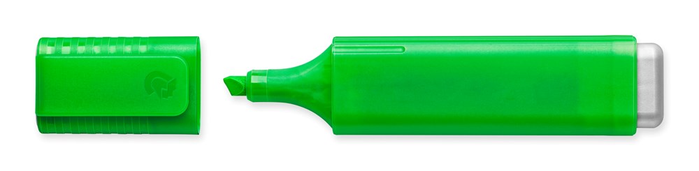 Textmarker mit großem Tintenspeicher für extra lange Markierleistung, Tinte auf Wasserbasis, INKJET SAFE - verwischt keine Inkjet-Ausdrucke, sekundenschnell trocken, Drehkappe für leichtes Öffnen, Schaft und Schoner in Tintenfarbe transparent, Made in Germany