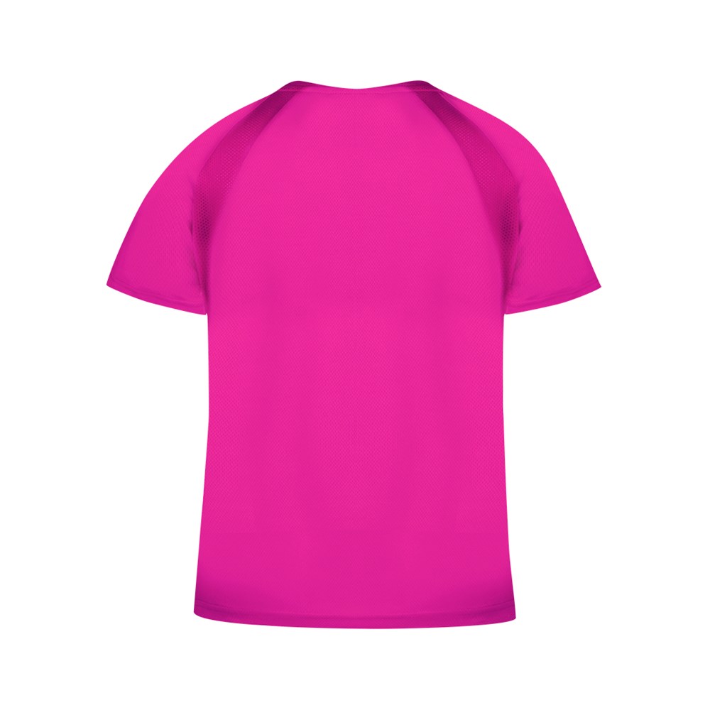 Damen-T-Shirt aus 100% atmungsaktivem Polyester mit 135g/m2. Mit Ranglan-Ärmeln, Rundhalsausschnitt und Front- und Seitenstreifen aus atmungsaktivem, mikroperforiertem Gewebe. Erhältlich in den Größen S, M, L, XL.