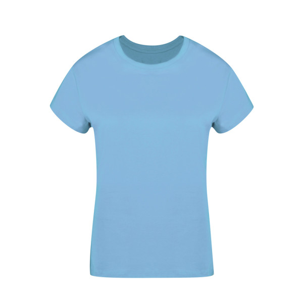 Damen-T-Shirt. Aus glattem Jersey, 100% Baumwolle, im Single-Jersey-Stil mit einem Gewicht von 160g/m². Weiches Gefühl und moderner Schnitt, mit Seitennähten. Schmaler Rundhalsausschnitt aus 1x1-Rippstrick. Doppelnähte an Saum und Ärmeln für erhöhte Langlebigkeit und Widerstandsfähigkeit bei intensivem Gebrauch. Leicht abnehmbares Etikett. Erhältlich in einer breiten Palette von modischen Farben und in den Größen S, M, L, XL und XXL.