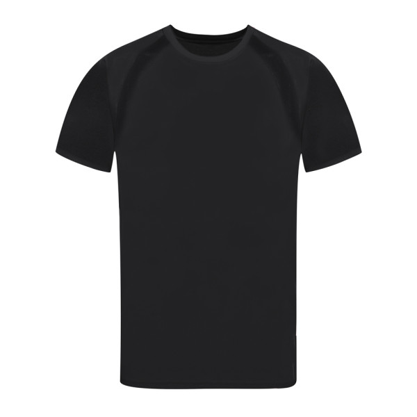 Technisches T-Shirt für Erwachsene aus 100% atmungsaktivem Polyester 135g/m2. Mit Ranglan-Ärmeln, Rundhalsausschnitt und Front- und Seitenstreifen aus atmungsaktivem, mikroperforiertem Gewebe. Erhältlich in den Größen S, M, L, XL, XXL.