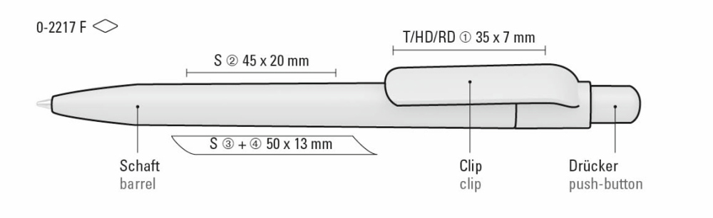 Druckkugelschreiber aus recyceltem PET-Material mit matt gedecktem Gehäuse, Clip, Drücker und Stopfen.