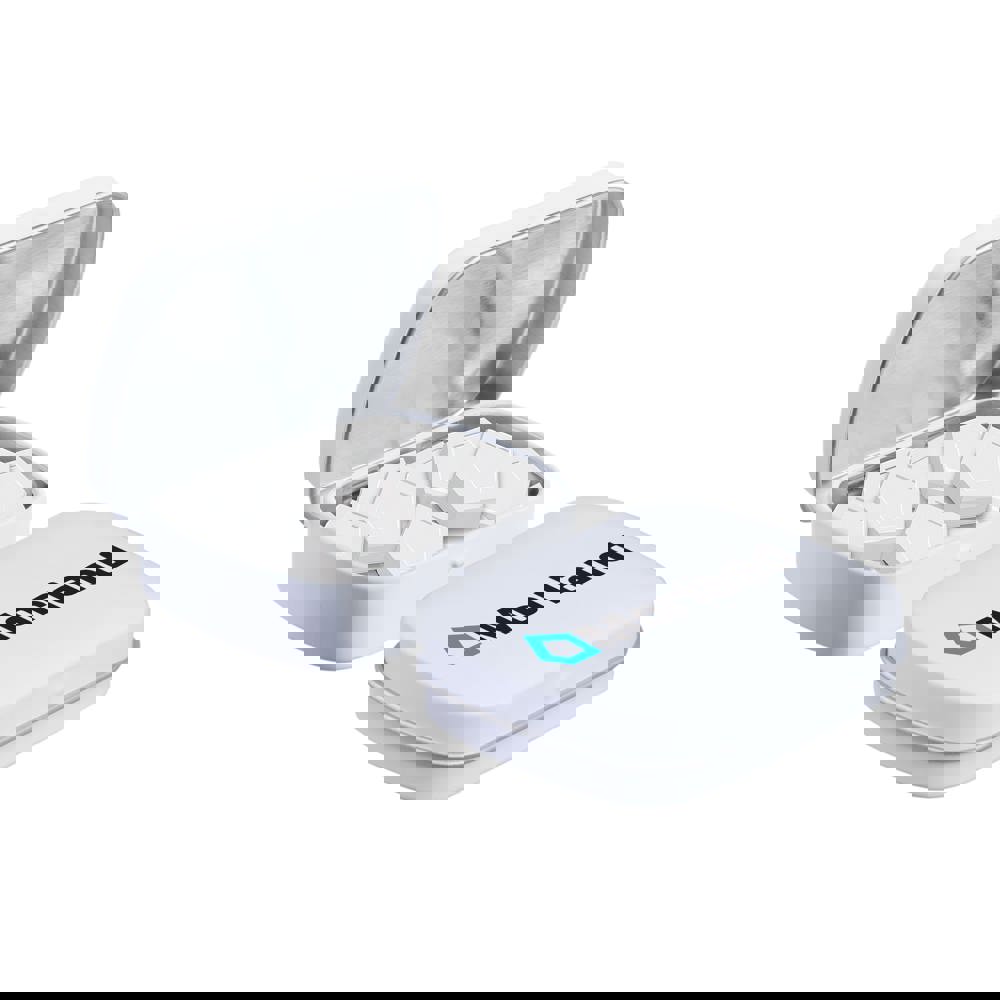 Mini Klappdeckeldose weiß mit ca. 23 Gramm Logo Pfefferminz, 4c-Euroskala bedruckt, mit Zutatenaufkleber und eingeschweißt
