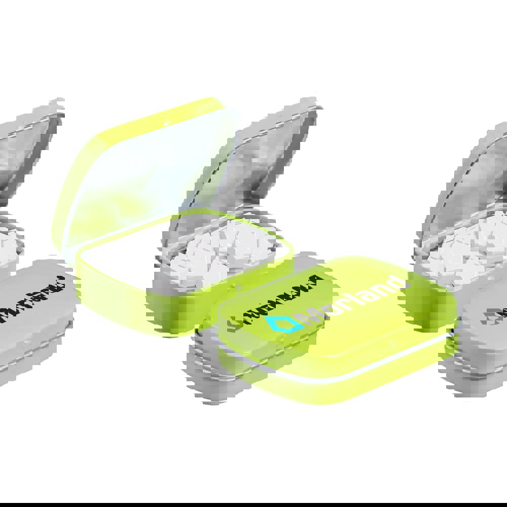 Mini Klappdeckeldose Logo Pfefferminz